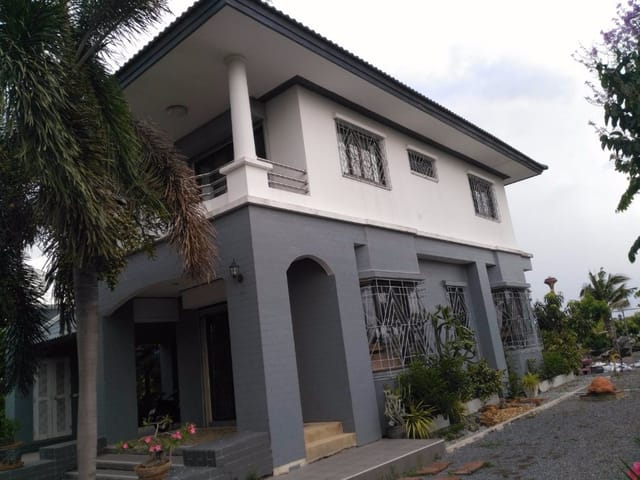 เราเลยได้มีโอกาสคุยกับลุงว่า เจ้าของแต่งงานกับชาวเยอรมัน ซื้อที่ต้องนี้ ถมที่แล้วปลูกบ้านเลย โดยไม่ได้ทิ้งให้ดินแน่น สามีที่เป็นเยอรมัน ก็ไม่เคยมาดูเลยระหว่างก่อสร้าง และที่ขายเพราะ ผู้หญิงเสียชีวิตไปด้วยโรคมะเร็งเมื่อ 2 ปีก่อน สามีเลยกลับประเทศเยอรมันไป ก่อนเสียชีวิต ลุงบอกว่า ปีนั้นบ้านทรุด มาก จ้างช่างมาจากรุงเทพ มาซ่อม หมดไปอีกเป็นล้าน