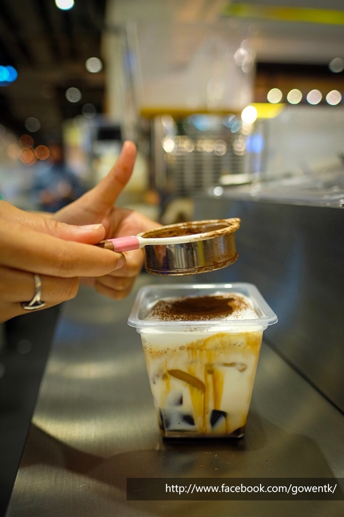 ขนมและเครื่องดื่มทั้งหลายของร้านนี้จะมี 2 ไซส์ครับ ในถ้วยทรงเหลี่ยมเท่ห์ ๆที่ดูไม่ซ้ำร้านอื่นดี ขนมชิ้นแรกที่มาเป็นเครื่องดื่มแล้วผมได้ลองคือ Banoffee ( เล็ก 135 บาท / ใหญ่ 155 บาท ) ที่ใช้ดาร์คชอคโกแลตนำเข้า มาผสมกับ กล้วยหอมและคาราเมลเนยสด แถมมี ครัมเบิลกรอบ ๆ ให้สัมผัสเหมือนขนมเวลาทาน แถมไม่หวานจัดจนดื่มได้สบาย แก้วถัดมาที่ได้ลองคือ Tiramisu ( เล็ก 130 บาท / ใหญ่ 150 บาท ) ขนมรสกาแฟที่ทุกคนรู้จักดี พอเป็นเครื่องดื่มก็มีรสกาแฟไม่มาก ขนาดผมไม่ชอบทานกาแฟยังดื่มได้เพลิน ๆ แถมใส่ มาสคาโปนชีส เจลลีกาแฟและรัมเข้าไปอีก ผมว่าโอเคอยู่