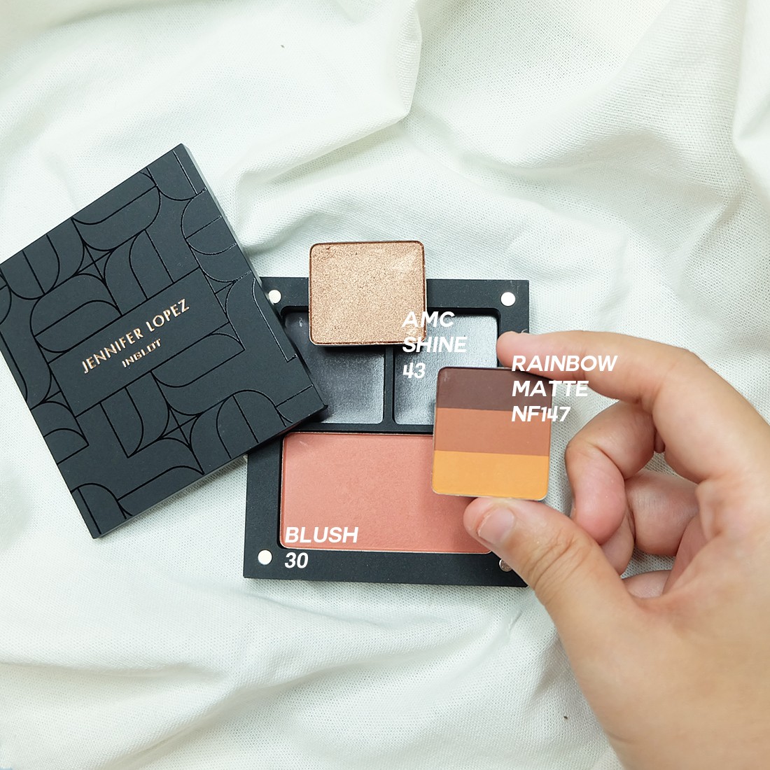 พาเลตเป็นคอลเลคชั่นของเจโลส่วนด้านในมี Eyeshadow Rainbow Matte #NF147 + AMC Eye Shadow Shine#43 และ Blush #30