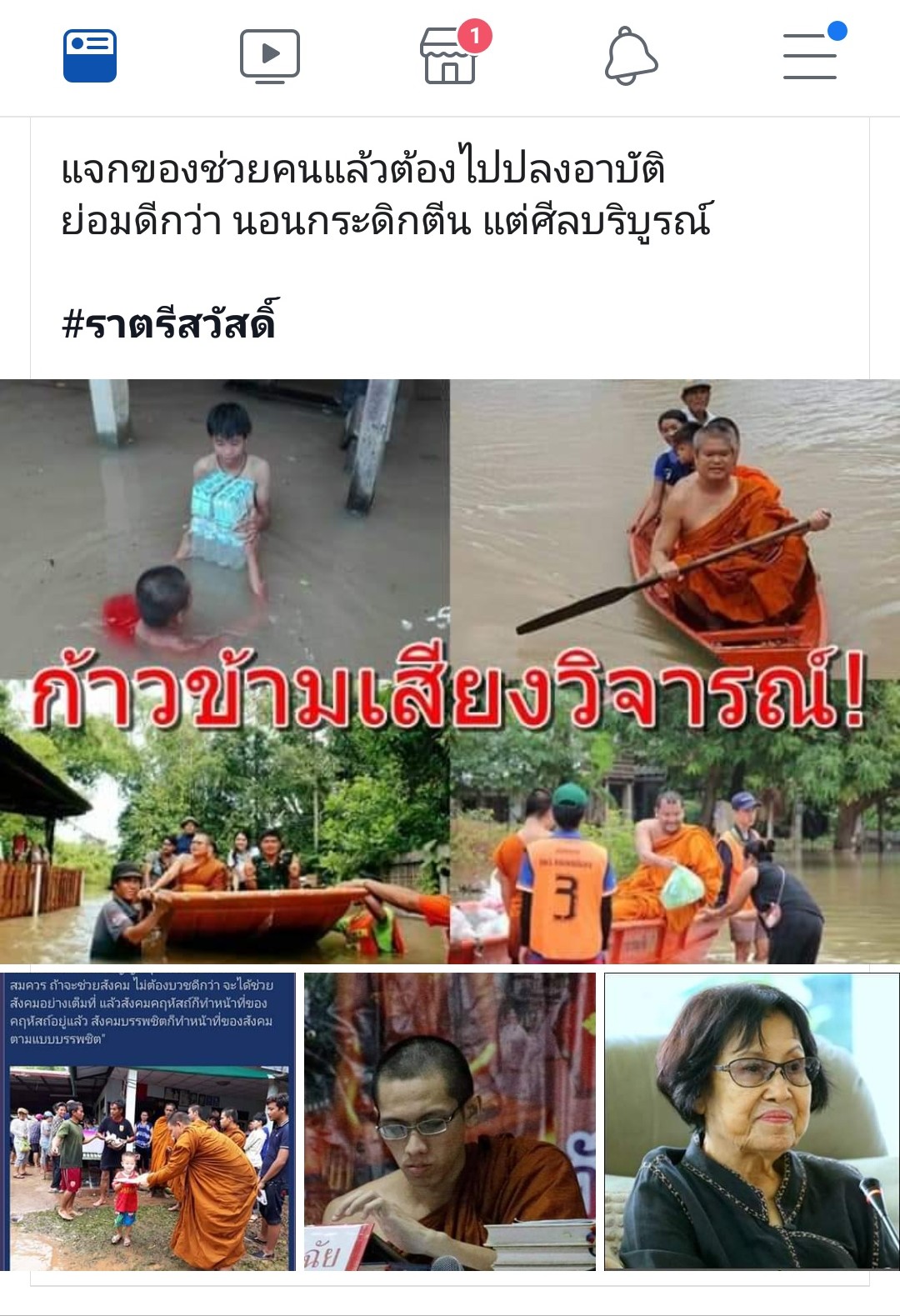 ก็ช่วยได้ สมควรช่วย แต่ช่วยในขอบเขตที่สมควร และต้องสังวรในสมณสารูป(อย่างที่ คห บน ยกมา)ไม่เปิดช่องให้ชาวบ้านติเตียนได้ เช่น พระไปทำอาหารแจกชาวบ้าน แบบนี้ไม่ค่อยเหมาะ ถ้าอยากทำตรงนี้ก็ควรให้ไวยาวัจกรนำเงินวัดไปซื้อวัตถุดิบมาแจกที่โรงทาน ให้ญาติโยมทำกันเองแบบนี้ดีกว่า แต่กรณีพายเรือแจกของหรือไปแจกของแบบนี้ก็ไม่เป็นไรหรอก ก็ต้องดูเป็นอย่างๆไป ติทั้งหมดไม่ได้ คนจ้องจะติเอาถ่ายเดียวไม่ว่าพระทำอะไรก็ผิดไปหมด ผมว่าก็จะเป็นภัยเป็นบาปแก่ผู้ติเตียนเองนั่นแหละ