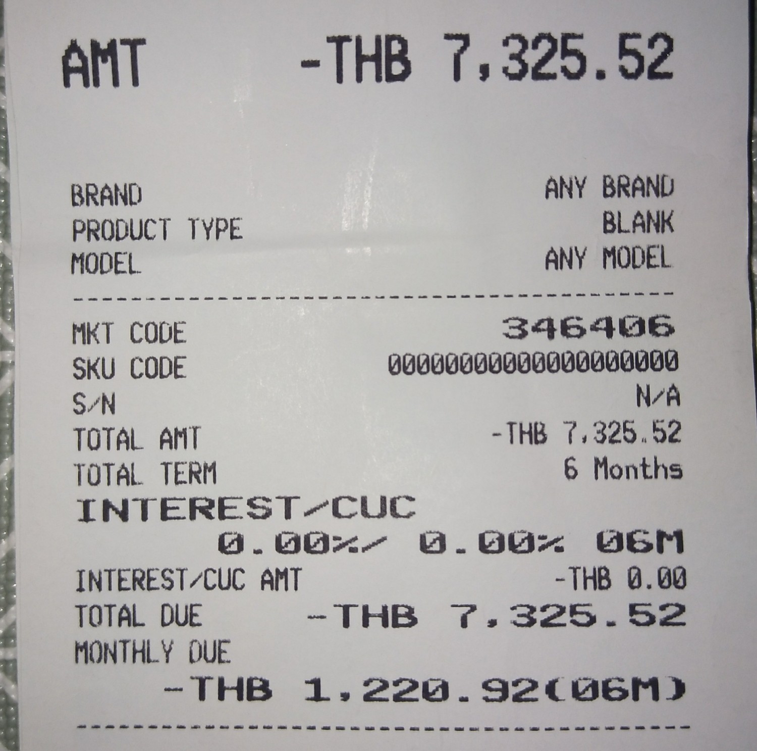 ปกติแล้วเราผ่อนสินค้า 0.00% ในสลิปก็ขึ้น 0.00%
