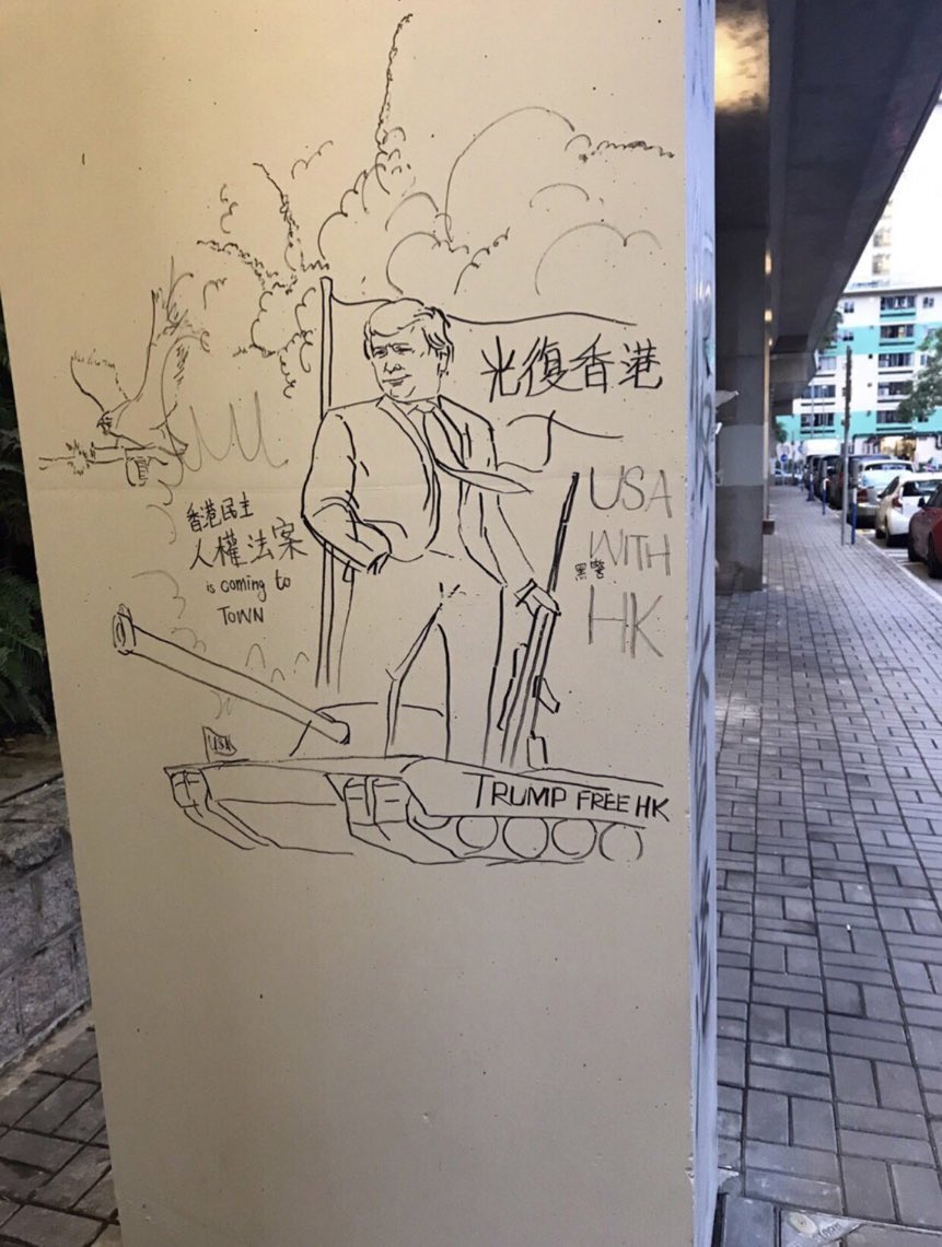 "ในขณะที่สหรัฐฯกำลังอยู่ระหว่างการติดล็อกในสงครามการค้ากับจีนในเวลานี้ นี่ถือเป็นโอกาสดีของพวกเราที่จะแสดงให้ (สหรัฐฯ) เห็นว่า กลุ่มพวกสนับสนุนจีนนั้นละเมิดสิทธิมนุษยชนในฮ่องกงและอนุญาตให้ตำรวจฮ่องกงแสดงความป่าเถื่อน"