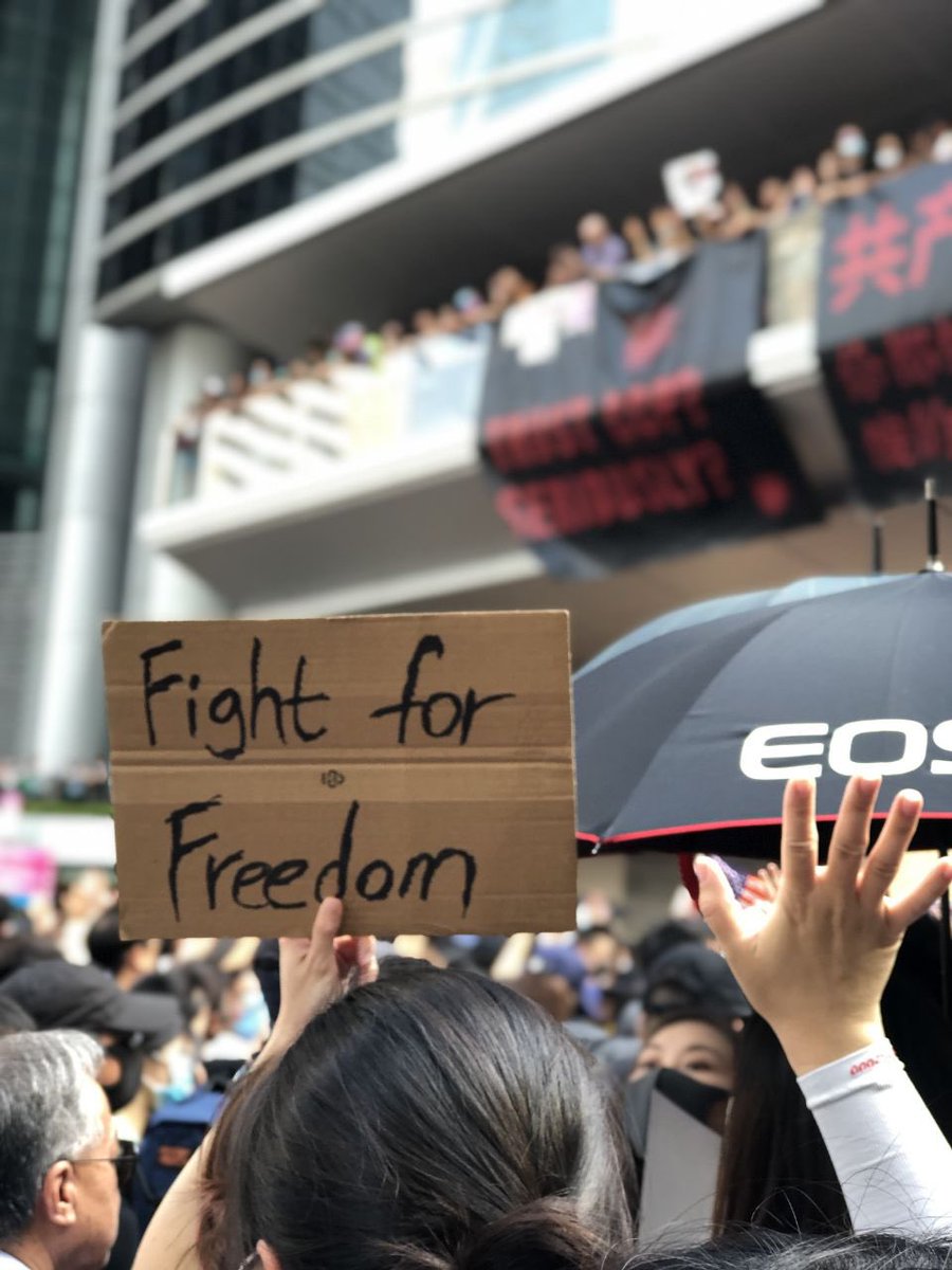 โดยกลุ่มผู้ประท้วงประกาศว่า "ต่อสู้เพื่อเสรีภาพ ยืนเคียงข้างฮ่องกง" และยังประกาศต่อว่า "ต่อต้านปักกิ่ง ปลดปล่อยฮ่องกง"