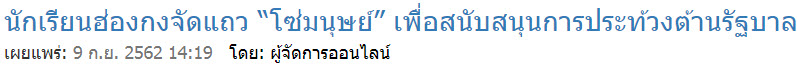 "ต่อสู้เพื่อเสรีภาพ ยืนเคียงข้างฮ่องกง"