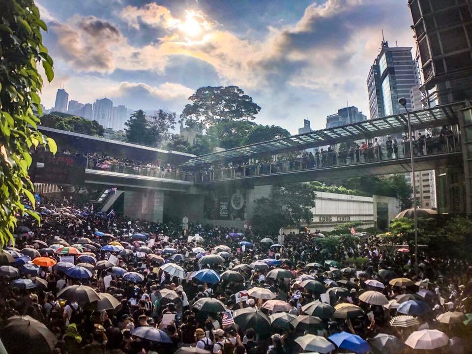 หนึ่งในผู้ชุมนุมวัย 64 ปีที่ให้ชื่อว่า "เชอร์รี" ทำงานในเขตย่านการเงินของฮ่องกงกล่าวแสดงความเห็นว่า "ในขณะที่สหรัฐฯกำลังอยู่ระหว่างการติดล็อกในสงครามการค้ากับจีนในเวลานี้ นี่ถือเป็นโอกาสดีของพวกเราที่จะแสดงให้ (สหรัฐฯ) เห็นว่า กลุ่มพวกสนับสนุนจีนนั้นละเมิดสิทธิมนุษยชนในฮ่องกงและอนุญาตให้ตำรวจฮ่องกงแสดงความป่าเถื่อน"