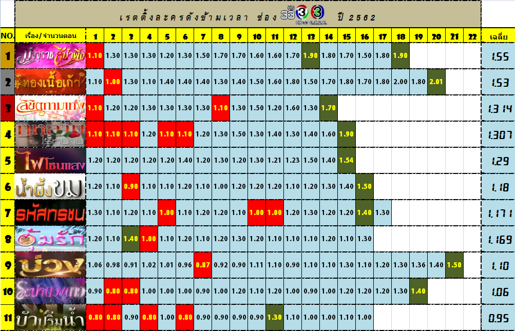 >>> สรุปเรตติ้งละครดังข้ามเวลา(รีรันเช้า) ช่อง3HD ตั้งแต่ต้นปี62 ทั้งหมด11เรื่อง #ล่าสุด@10/9/62 <<<