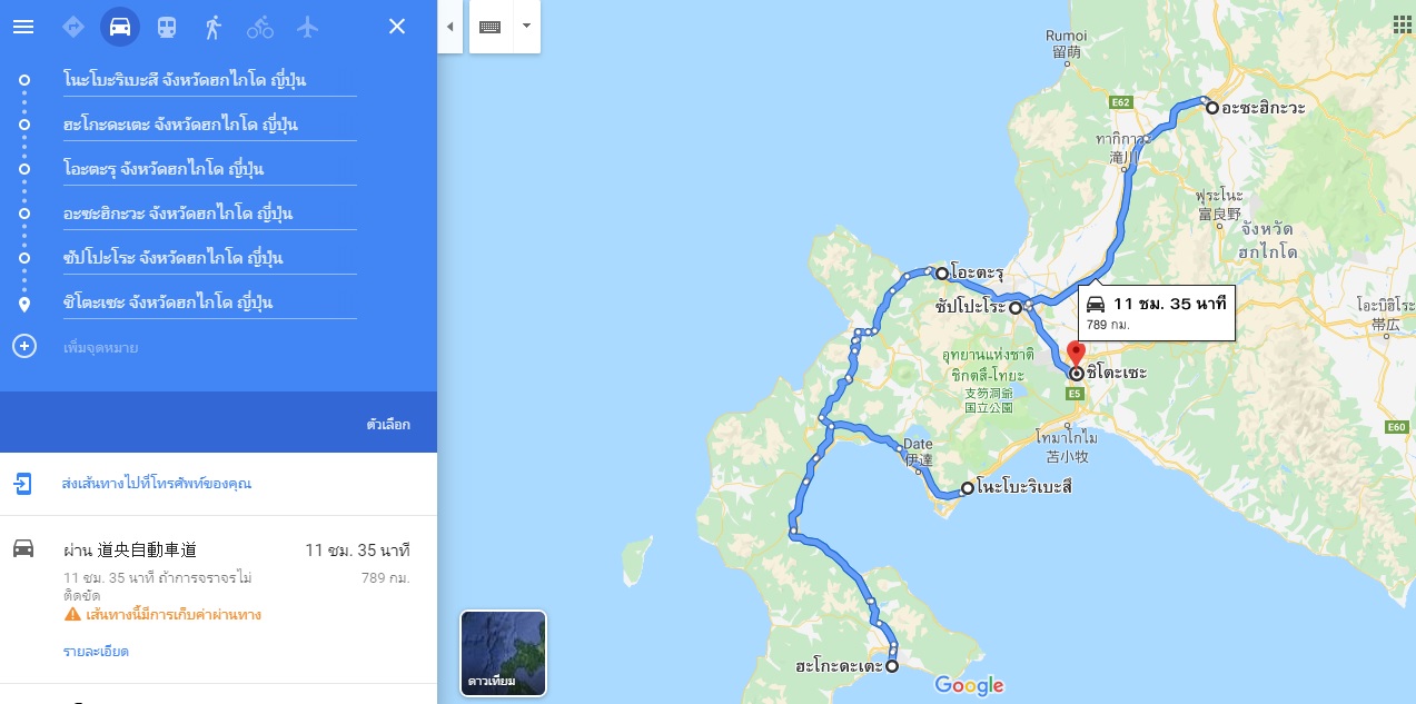 จากนั้นเราจะมาดูการเดินทาง ลองเปิด google map ลงชื่อเมืองแต่ละเมืองที่เราจะไป