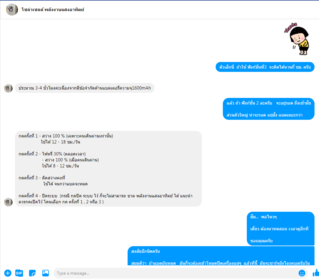 ***ในรูปข้างในแชท ที่มีรูปไฟโซลาร์ 5500mAh นั่น ไม่ใช่ตัวที่ผมถามเขานะ ตัวนั้นเป็นตัวใหญ่ ที่ไม่มีฟังก์ชั่นอะไร แบตหมด ตากแดดไปมันก็ชาร์จเอง ที่สงสัย แค่ตัวเล็ก**