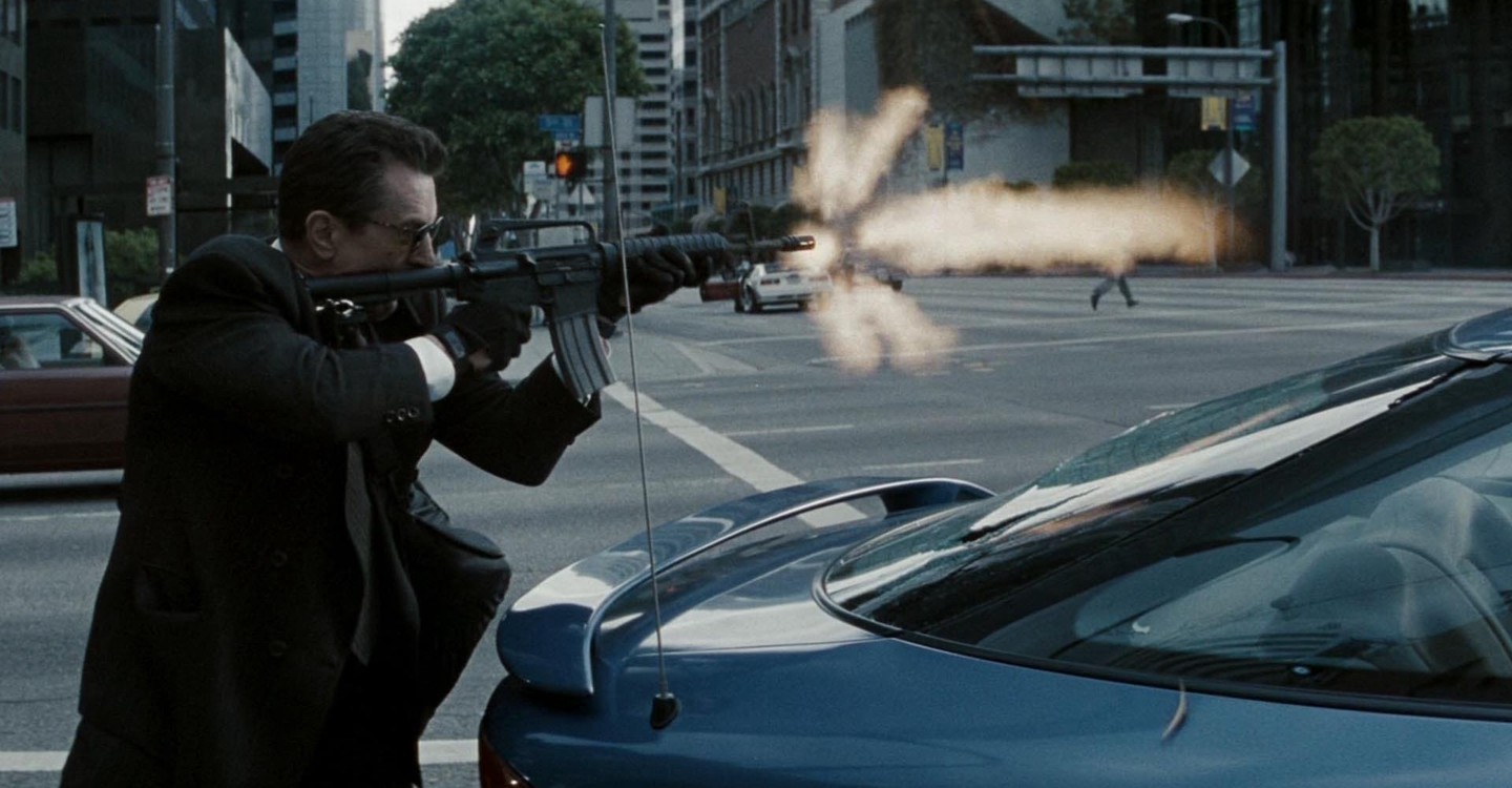 16. ความยากของการถ่ายซีนกระหน่ำกลางเมือง คือทางการอนุญาตให้ถ่ายเฉพาะเสาร์-อาทิตย์ ทีมงานเลยถ่ายซีนอื่นๆในระหว่างวีค แล้วมาทำฉากนี้กันต่อในสุดสัปดาห์ ทีนี้ มีอยู่วันนึงที่เป็นวันแม่ ข้างๆโลแถวนั้นมีร้านอาหารบุฟเฟ่ต์ ซึ่งมีคุณลูกพาคุณแม่และครอบครัวมาทานข้าว เลยมีวิวดูอัลกับเดอ นิโร วิ่งไล่ยิงปืนใส่กันประกอบการกินอาหาร