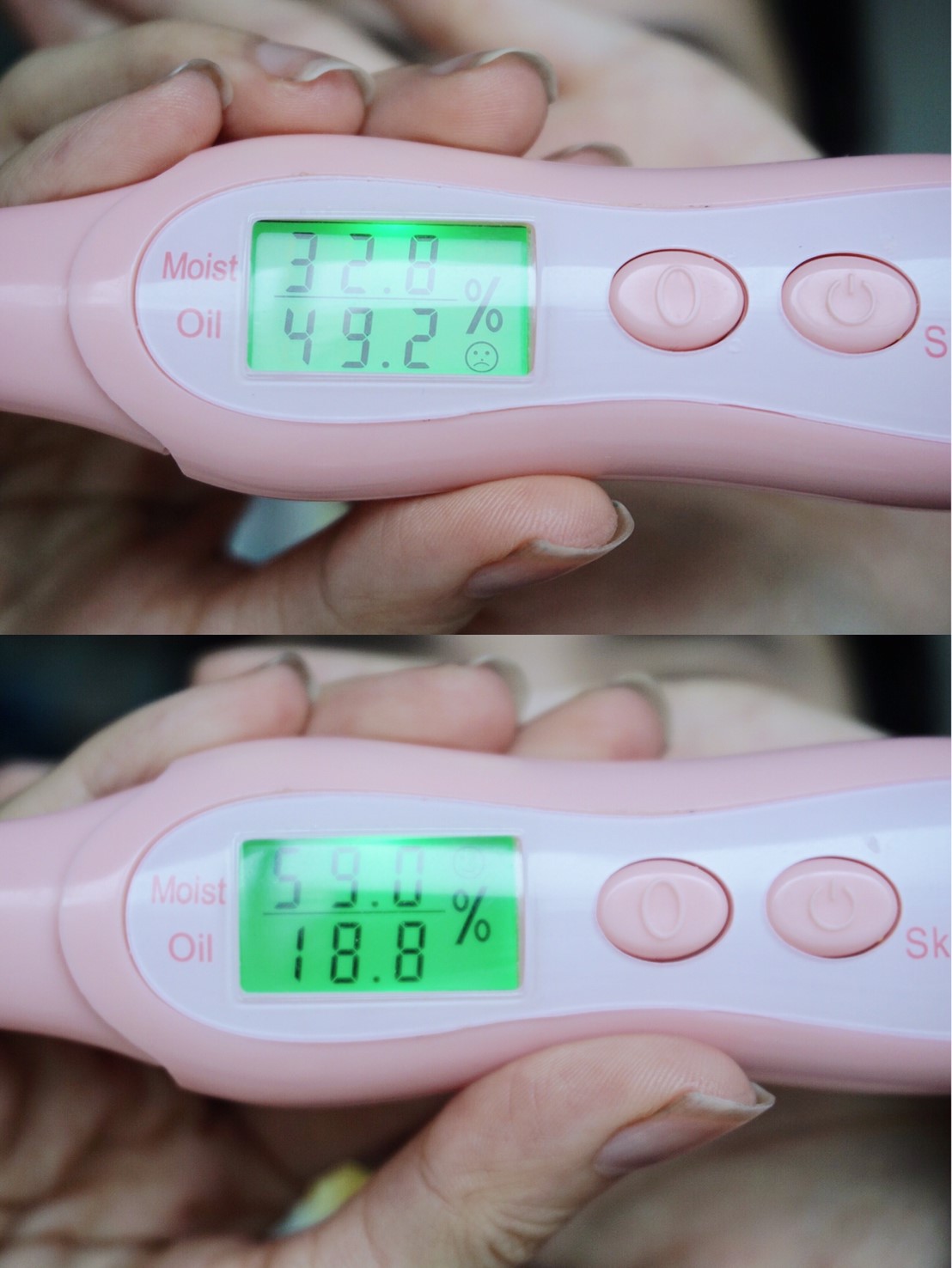 หน้าหลังนะเสร็จจะเห็นว่าความชุ่มชื้นขึ้นมาที่ 59% และค่าน้ำมันลดลงเหลือ 18% เท่านั้น