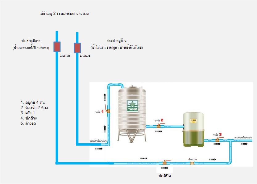 1. ประปาหมู่บ้าน (น้ำไม่ค่อยแรง / บางครั้งไม่ไหล / ถูกมาก)