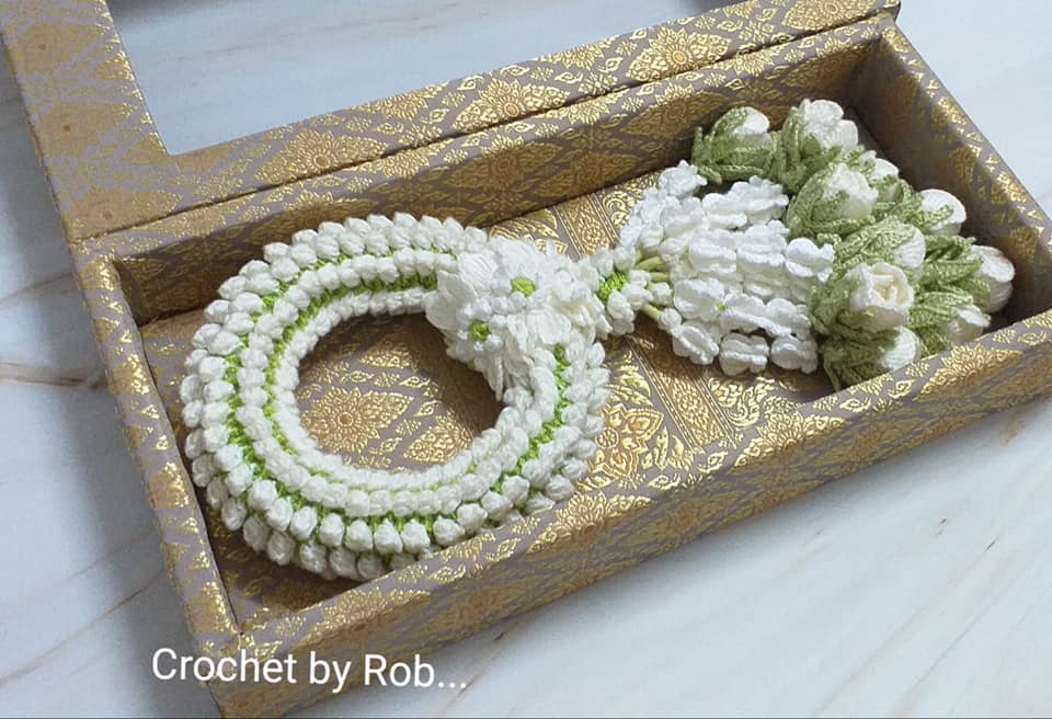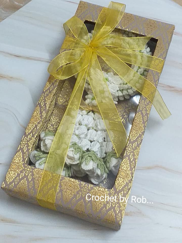 พวงมาลัยโครเชต์ พร้อมกล่องผ้า สวยหรู เพิ่มให้งานดู คว