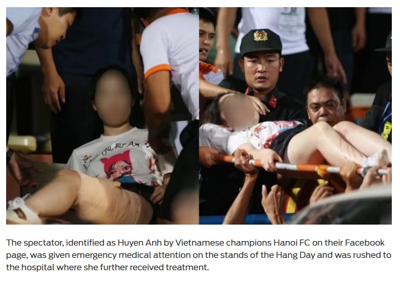 [Spoil] คลิกเพื่อดูข้อความที่ซ่อนไว้https://www.foxsportsasia.com/football/asian-football/1170730/vietnamese-football-fan-suffer-serious-injury-after-flares-hit-her-during-hanoi-fcs-v-league-match/