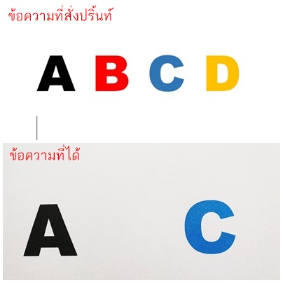 สีแดงและเหลืองไม่ออก ลองล้างหัวพิมพ์หลายรอบแล้ว แต่ผลเป็นเช่นเดิม