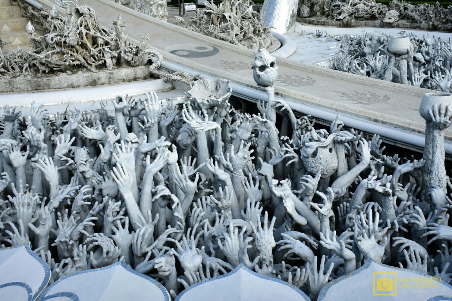 - สันของสะพาน : มีอสูรอมกัน ข้างละ 8 ตัว 2 ข้าง รวมกันแทนอุปกิเลส 16