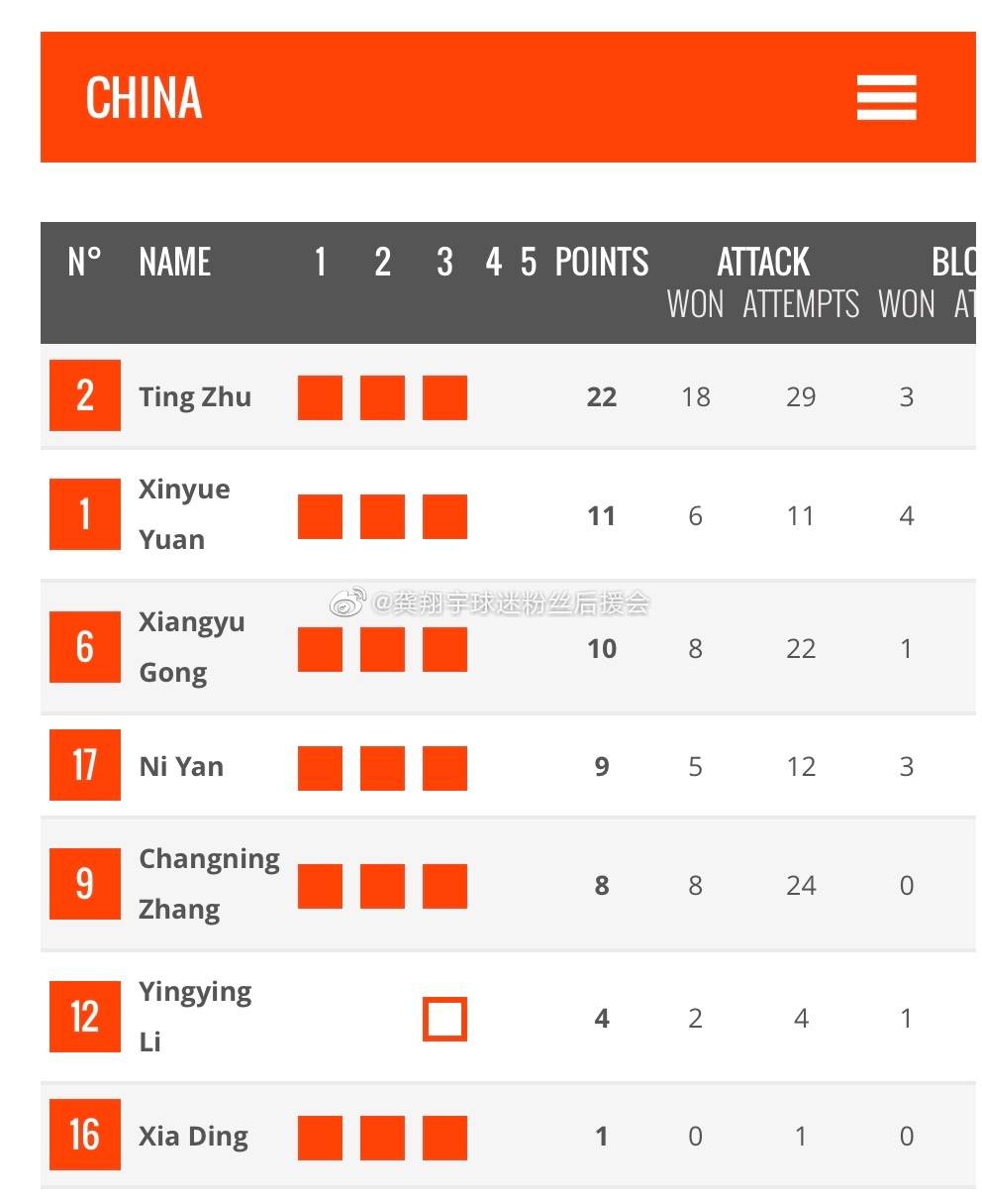 จขกท ให้ OH จางฉางหนิง, โรบินสัน OP กอนชาโรว่า MB ซายาสโก้, หยวนซินเยว่ ST มิยะ ซาโตะ LB โคบาตะ/หวังเม้งเจี๋ย/ลีอา MVP จูถิง