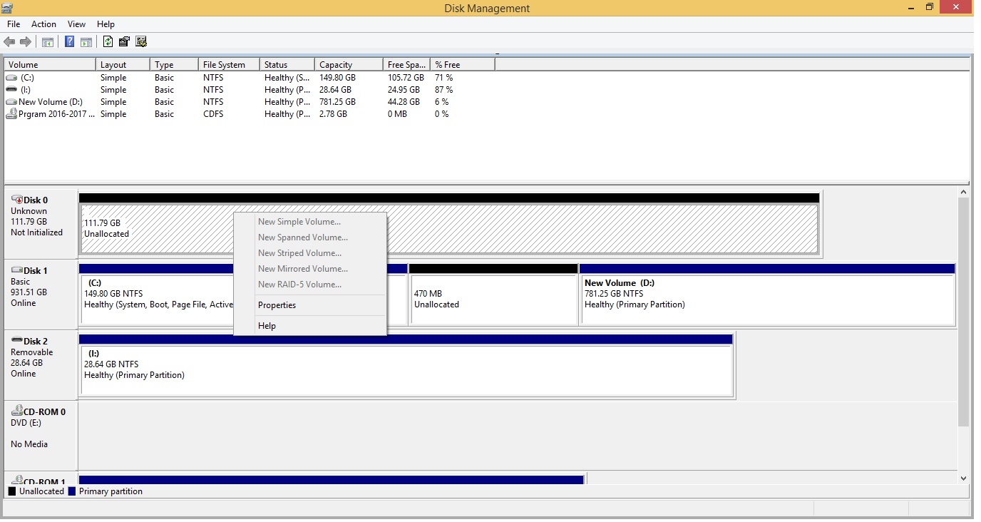 แต่เข้ามาทำใน window ตั้ง disk managment แล้วขึ้นอย่างนี้ครับ ไม่สามารถสร้างพาร์ทิชันได้เลย