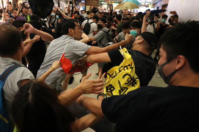 เนื่องจากกลุ่มผู้ประท้วงต่อต้านรัฐบาลและผู้สนับสนุนชาวปักกิ่งปะทะกันระหว่าง