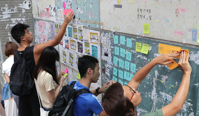 กำแพงเลนนอน ซึ่งเป็นฝาผนังที่ผู้ประท้วงและผู้สนับสนุน ปิดข้อความและคำขวัญต่อต้านรัฐบาล
