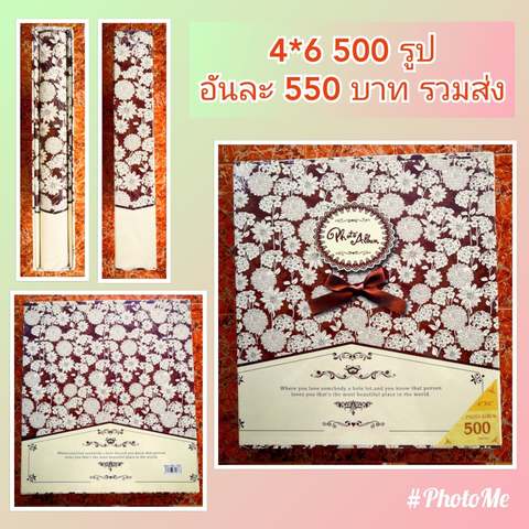 อัลบั้มรูปสอด ลายดอกไม้ โทนสีแดงอมน้ำตาล ขนาด 500 รูป ราคา 600 บาท รวมส่ง