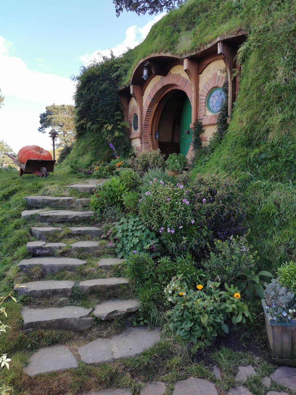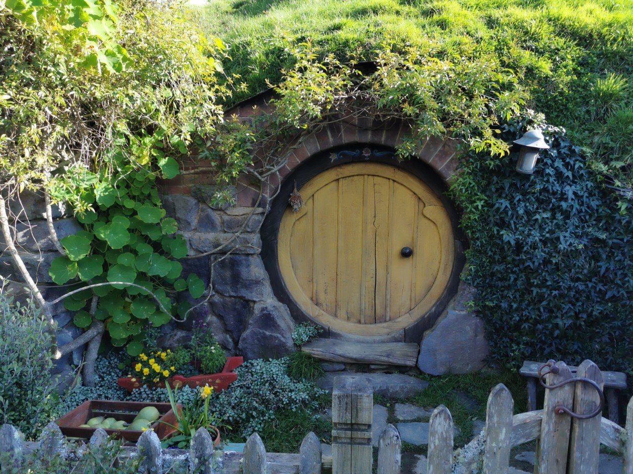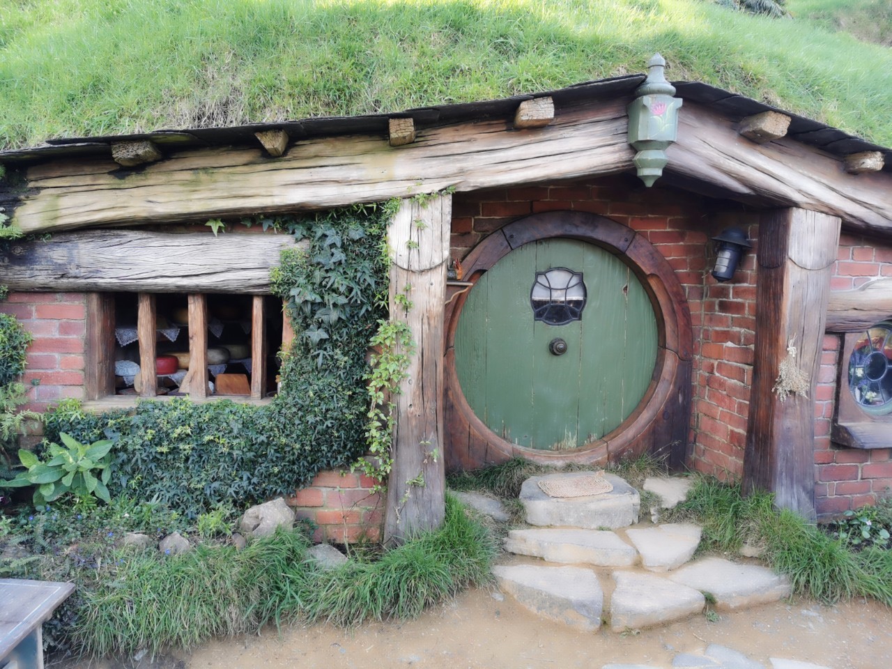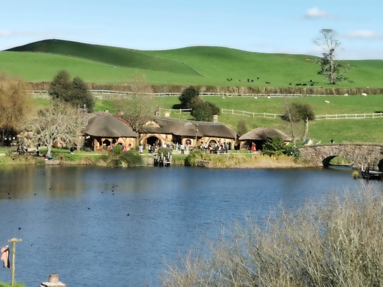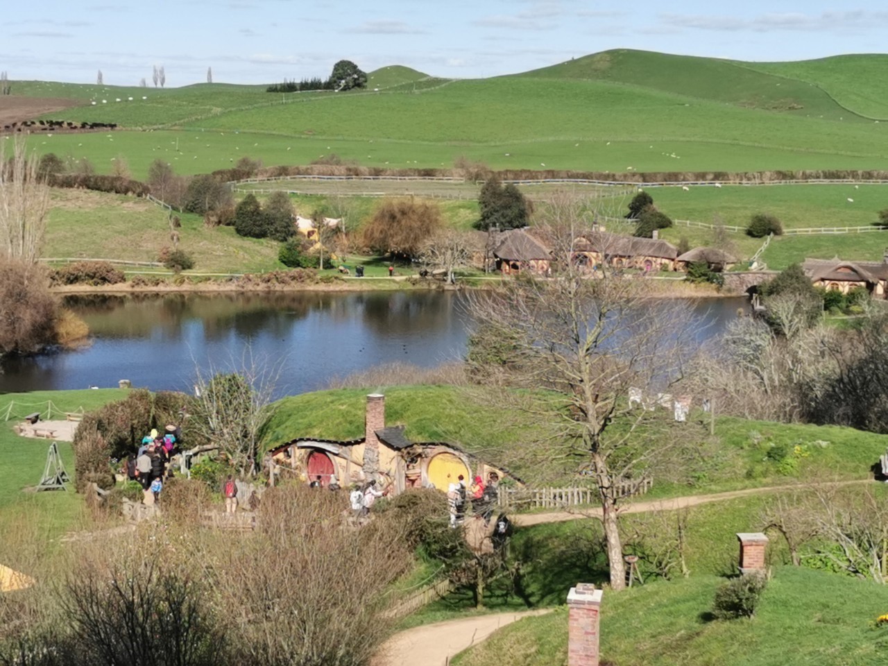 ก็สวยแปลกตาดี เหมือนมีหิ่งห้อยเกาะอยู่ตามผนังและเพดาน แล้วเราก็รีบไป Hobbiton ซึ่งห่างออกไปประมาณ 100 KM. แต่ต้องใช้เวลาขับรถ 1.30 ช.ม. เส้นทางช่วงนี้รถน้อยลงล่ะ ไม่เหมือนเมื่อวานตอนออกจาก Auckland ก็ทำเวลาได้ดีหน่อย ไปถึงนั่งรอสักพักก็ถึงรอบเรา ต้องขึ้นรถบัสของเขา เข้าไปด้านใน คนละฝั่งถนน ขับเข้าไปลึกพอสมควร แล้วเราก็ต้องเดินตามไกด์ไปตลอด ห้ามแตกแถว จนจบทริปด้วยการไปรับเครื่องดื่มคนละแก้ว เราเลือก Ginger Ale อร่อยดี