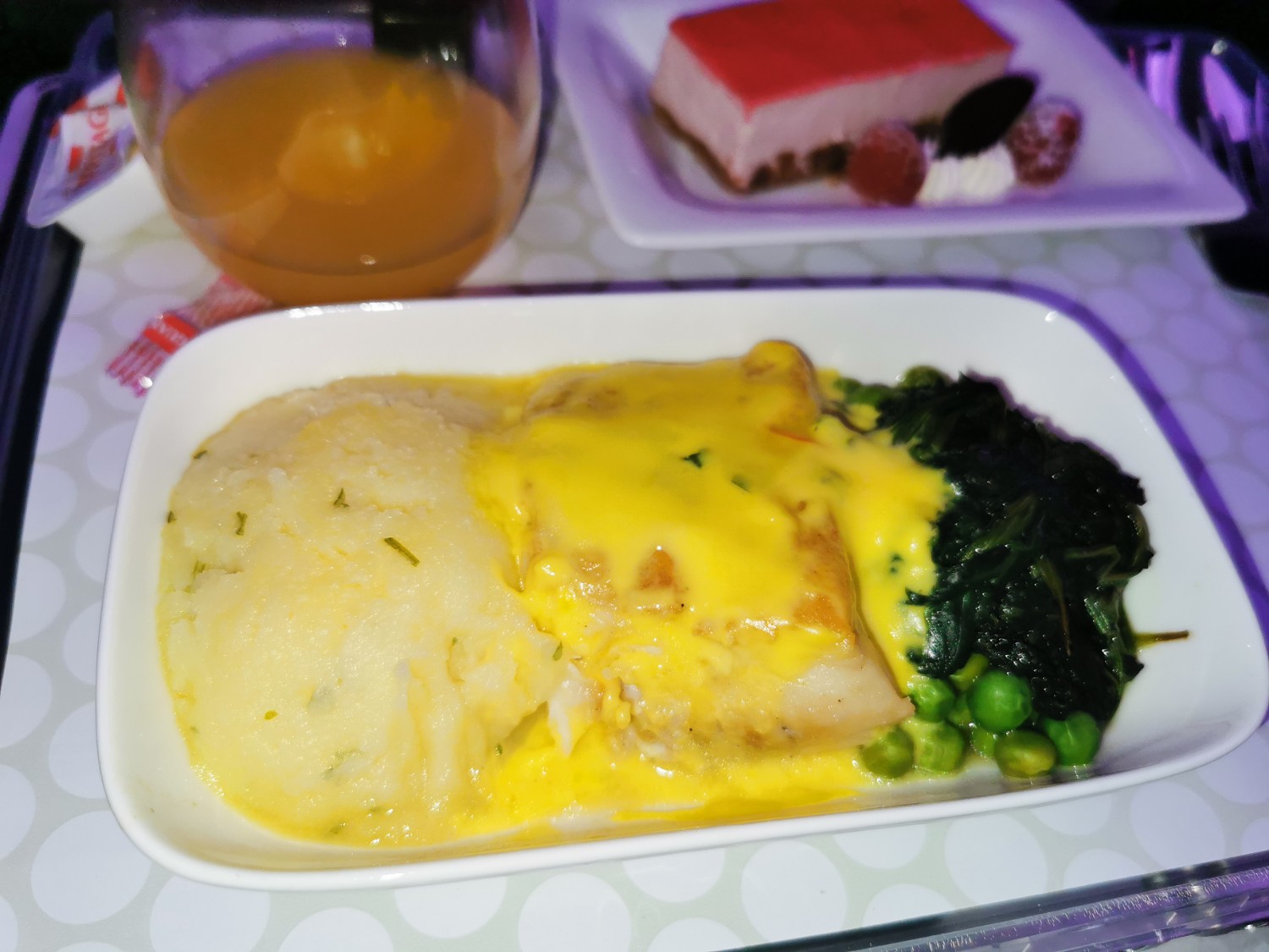 จานหลักของเราเป็นปลาอบกับซอสอะไรสักอย่าง อร่อยแบบจืดๆ