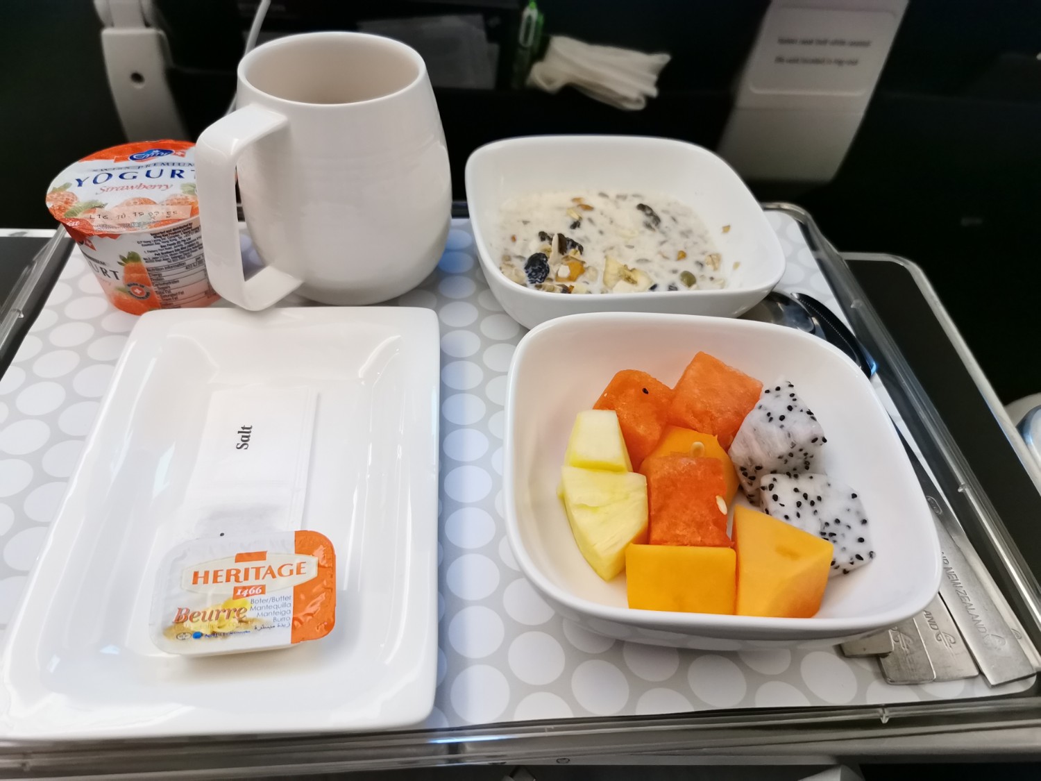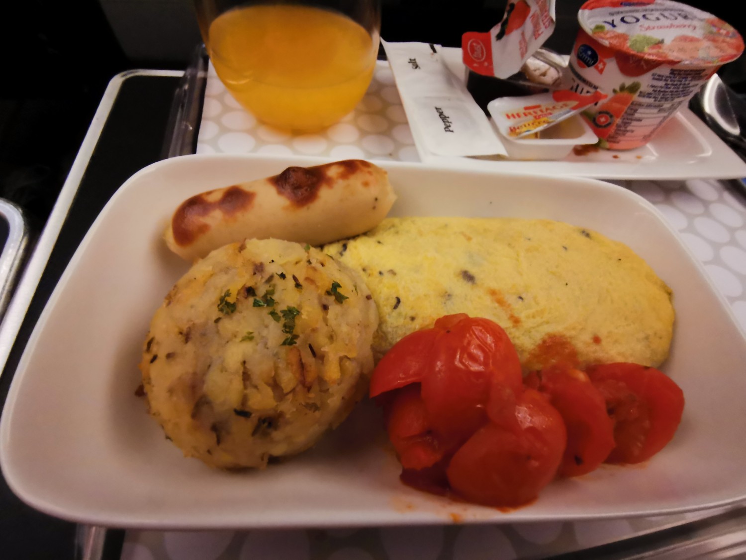 บินกันไป 10 กว่าชั่วโมง ก็เสิร์ฟมื้อเช้าจ้า ไม่ค่อยโดน สงสัยกะเพาะยังไม่ทำงาน