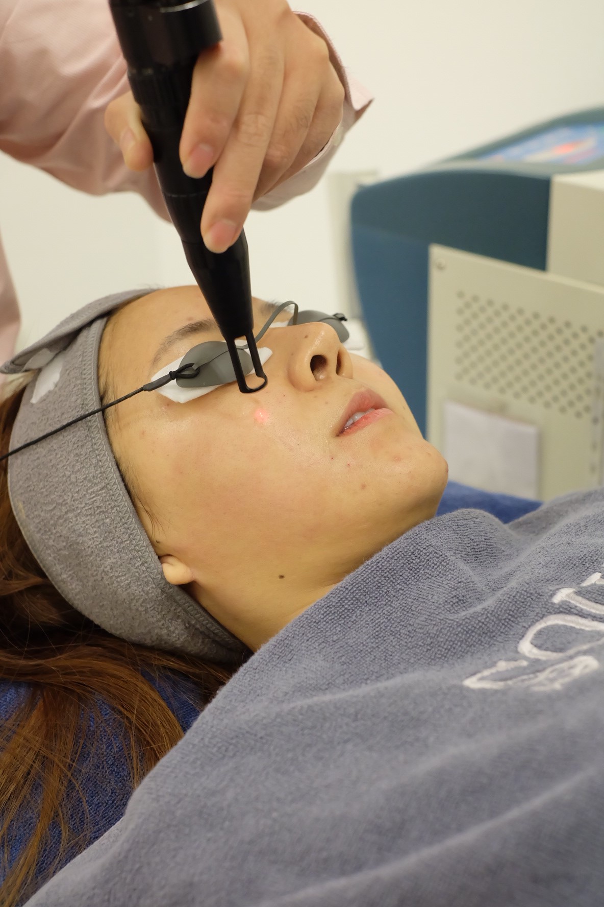 กดสิว -> ทรีทเม้น L-SMART Treatment (ฝนเลือก2สี) -> เลเซอร์ Spectra VRM Laser