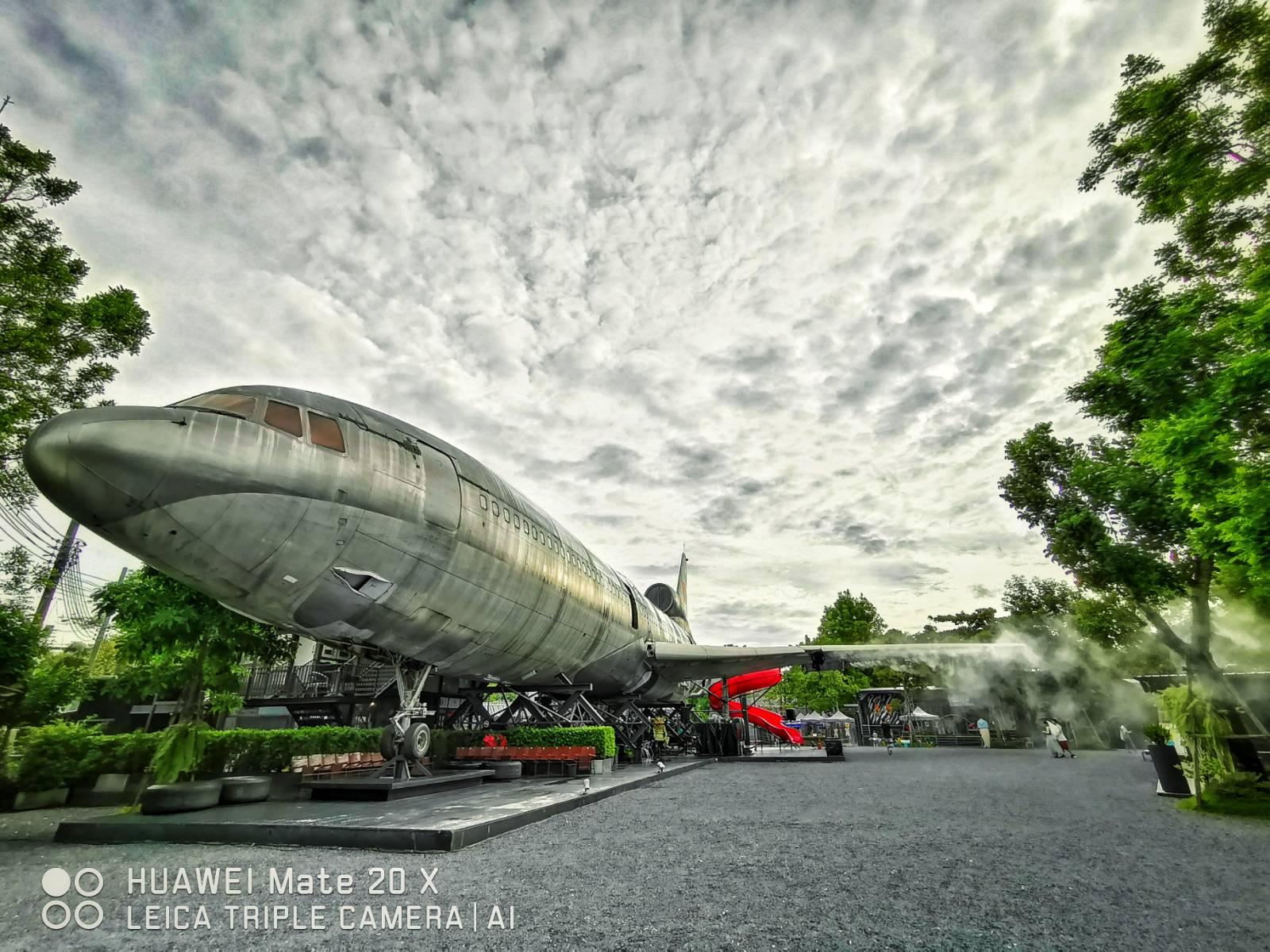 รูปที่ 6 เป็นเครื่องบินลำยักษ์ ซึ่งเป็นไฮไลท์ ที่ตั้งเด่นเป็นสง่าอยู่ใจกลางพื้นที่แห่งนี้ มาที่นี่ยังงัยก็ต้องมาถ่ายนะครับ รูปนี้ถ่ายช่วงเย็นๆ ค่อนข้างย้อนแสง แนะนำให้ถ่ายด้วย night mode และให้ใช้เลนส์ ultra wide เพื่อเก็บ เครื่องบินให้หมด พร้อมบรรยากาศรอบๆ ได้ครบด้วย ช่วงเย็นๆ แบบนี้ท้องฟ้องสวยมาก เราเลยให้สัดส่วนท้องฟ้า 2 ส่วน พื้นดิน 1 ส่วน และเพื่อเน้นเครื่องบินให้เด่น จึงวางส่วนหัวเครื่องบินไว้ตรงจุดตัดล่างซ่ายมือครับ