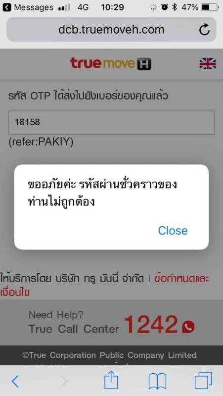 ได้รับ OTP เราก็ใส่ไป แต่ใส่ผิด ก็ใส่ใหม่