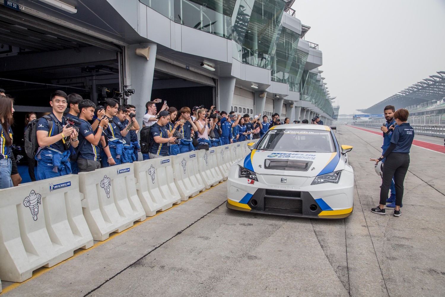 เราไปถึงเดินทางออกจาก Sama Sama ในช่วงสายๆ มุ่งหน้าไปยังสนามเซปังฯ และทันทีที่มาถึงและเดินลงจากรถ ก็มีการต้อนรับที่น่าประทับใจงานทีมงาน Michelin ที่ยืนเข้าแถวรอพวกเราพร้อมตบต้อนรับจับมือกันอย่างอบอุ่นเป็นกันเอง