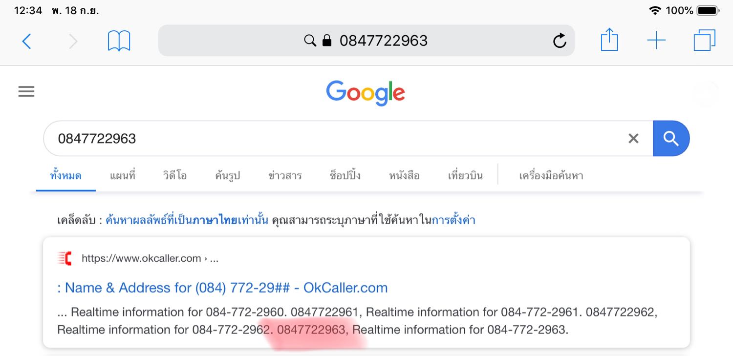 (เบอร์ที่ส่งมาเป็นเบอร์จากเว็บ okcaller.com)