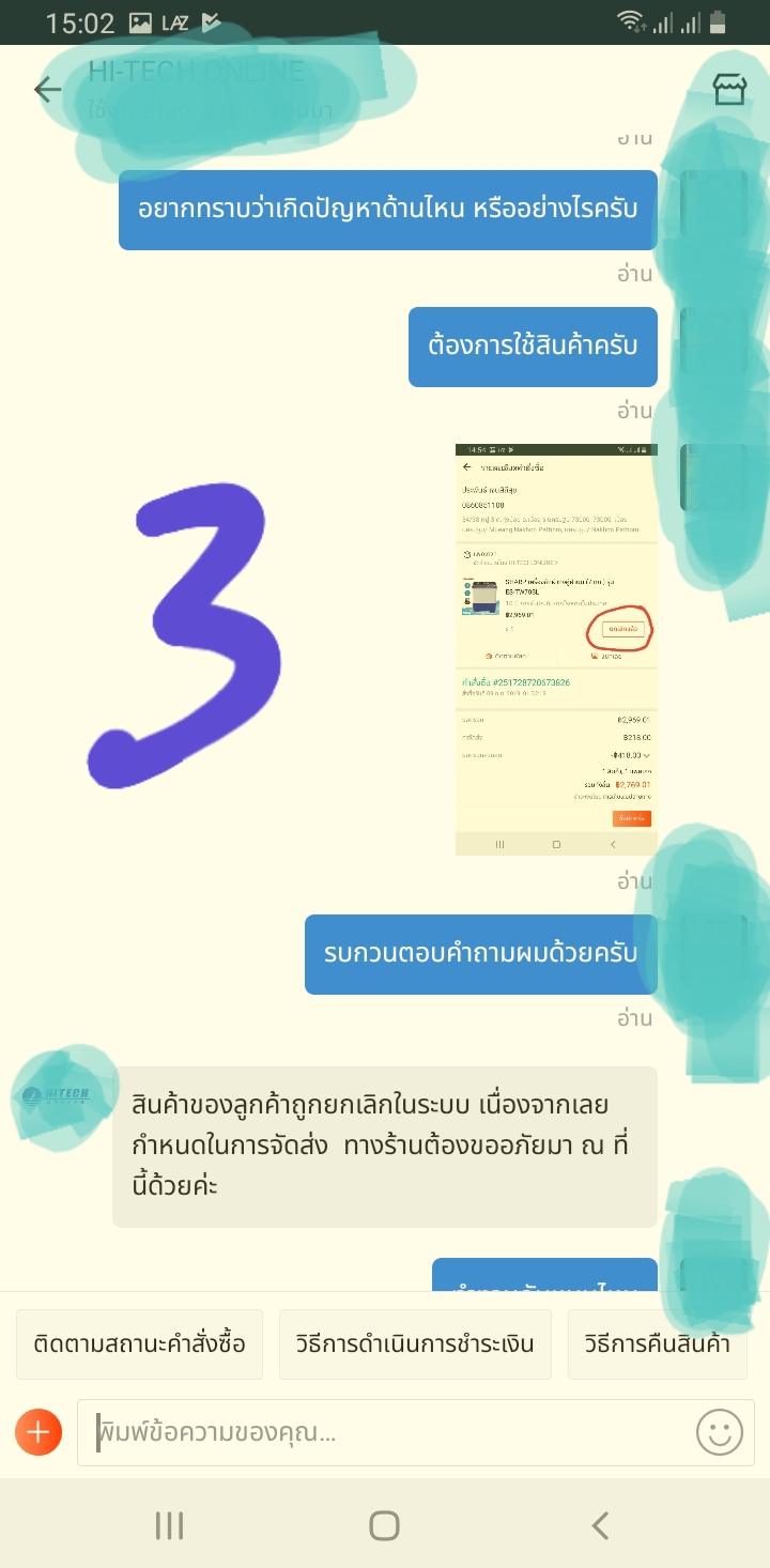 พอดีได้ทำการสั่งซื้อชุดว่ายน้ำไป จากร้านค้าในลาซาด้า (LAZADA) หลายวันมีคนโทรมาบอกว่า สีที่กดสั่งหมด ไซต์ก็ไม่มี ดิฉันจึงได้ทำการยอมเปลี่ยนแบบไป แต่ก็นานส่ง ไม่ทันใจ เลยกดยกเลิกไป แต่ทางร้านปฏิเส