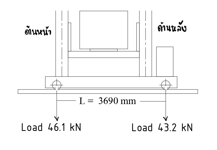 จากภาพมีแรงกระทำกับพื้น 2 ล้อขนาดแรงตามภาพซึ่งเป็นแรงขณะจอดนิ่ง