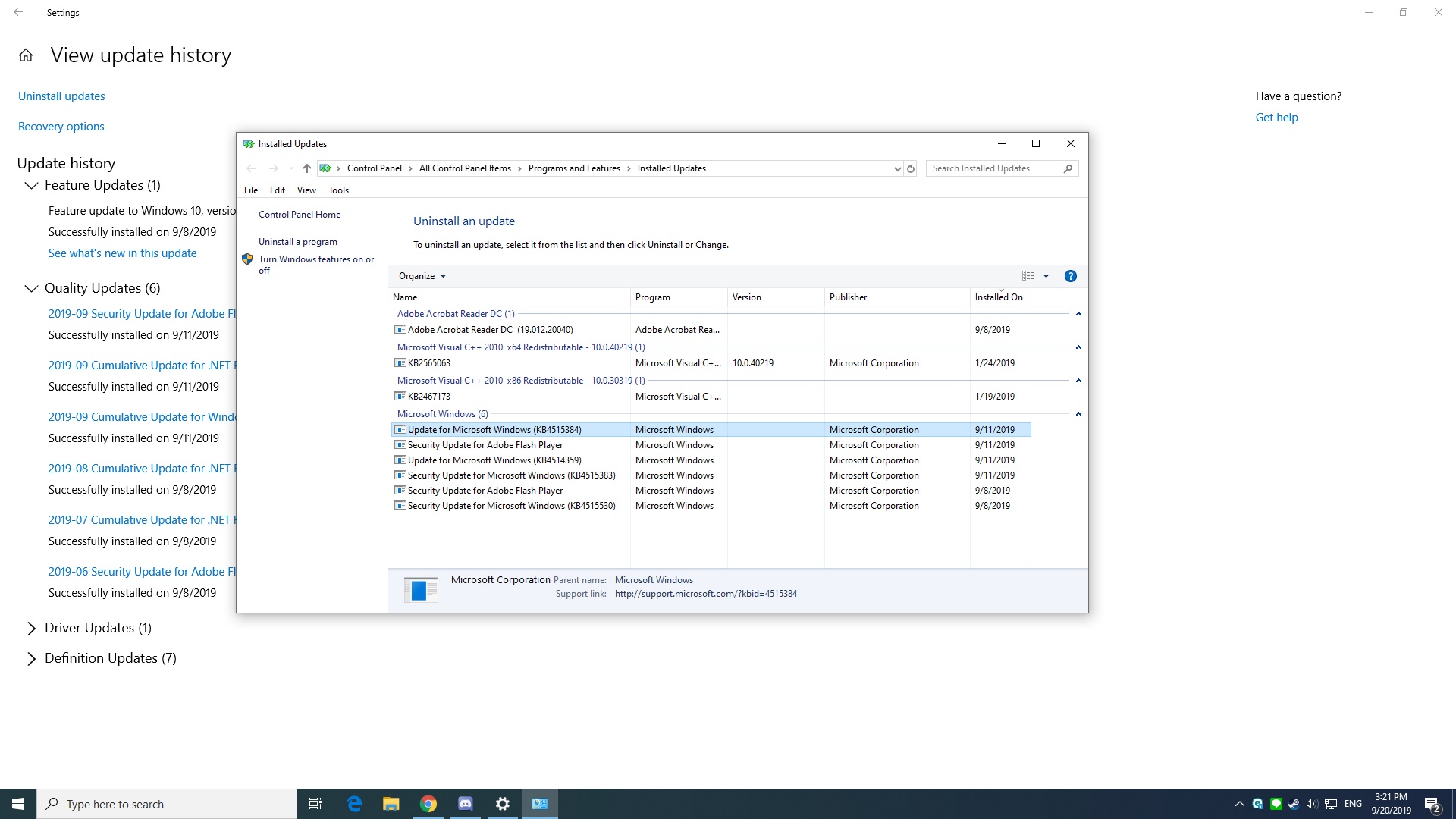 KB4515384 microsoft update ไม่มีตัวเลือกให้ uninstall ครับ