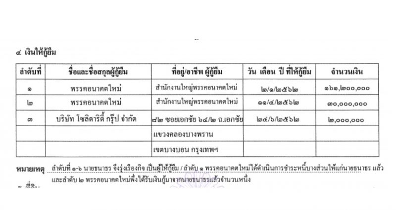 รวม 2 สัญญาการกู้เป็นเงิน 191,200,000 บาท