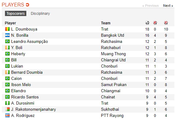 ท็อปสกอร์ ในปีที่ผ่านๆมามีนักเตะไทยติดมาบ้าง ปีนี้ปรากฏว่า ไม่มีธงชาติไทยบนตารางดาวซัลโว อันดับ 1-15 เลย