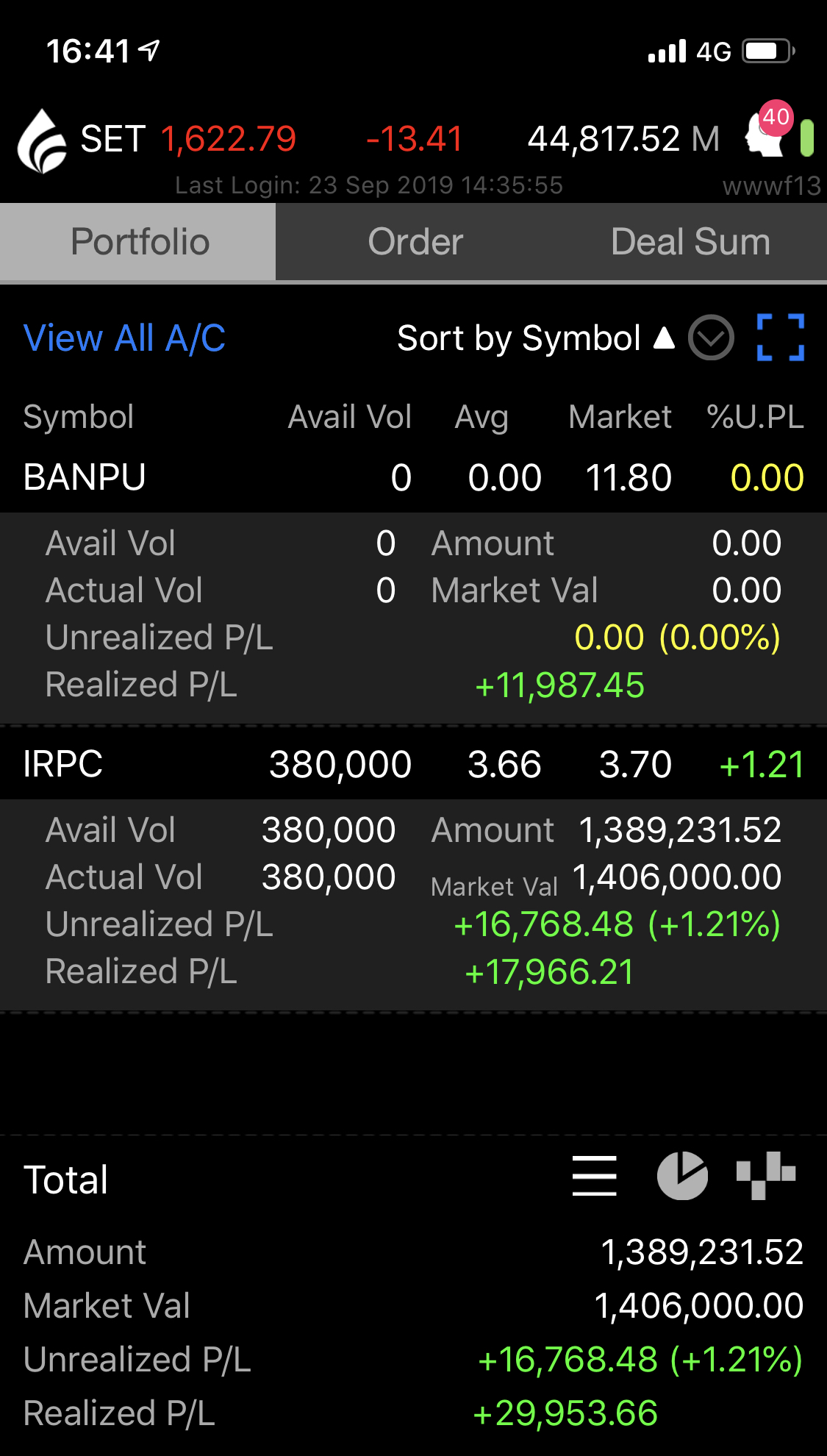 ขาย IVL ไปเมื่อวาน สลับมารับ IRPCแทนตอนปิดตลาด กับรับเพิ่มวันนี้เช้า ตอน ATO เย็นนี้รู้กัน ใจ ว่าจะขายไปซื้อ BANPUต่อ ปิดตลาดขายตัวที่รับมาเมื่อเช้าออกไป เหลือแค่ของเดิม run p