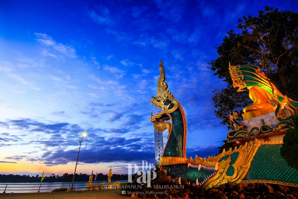ที่แนะนำจุดแรก คือบริเวณลานหน้าวัดไทยและริมแม่น้ำโขงตลอดตัวเมืองโพนพิสัย