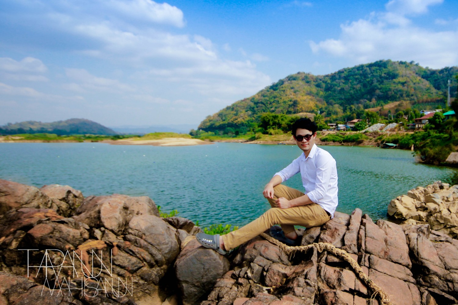 มีโขดหินน้อยใหญ่กลางน้ำโขง มีที่พักหลากหลายรูปแบบหลายแห่ง