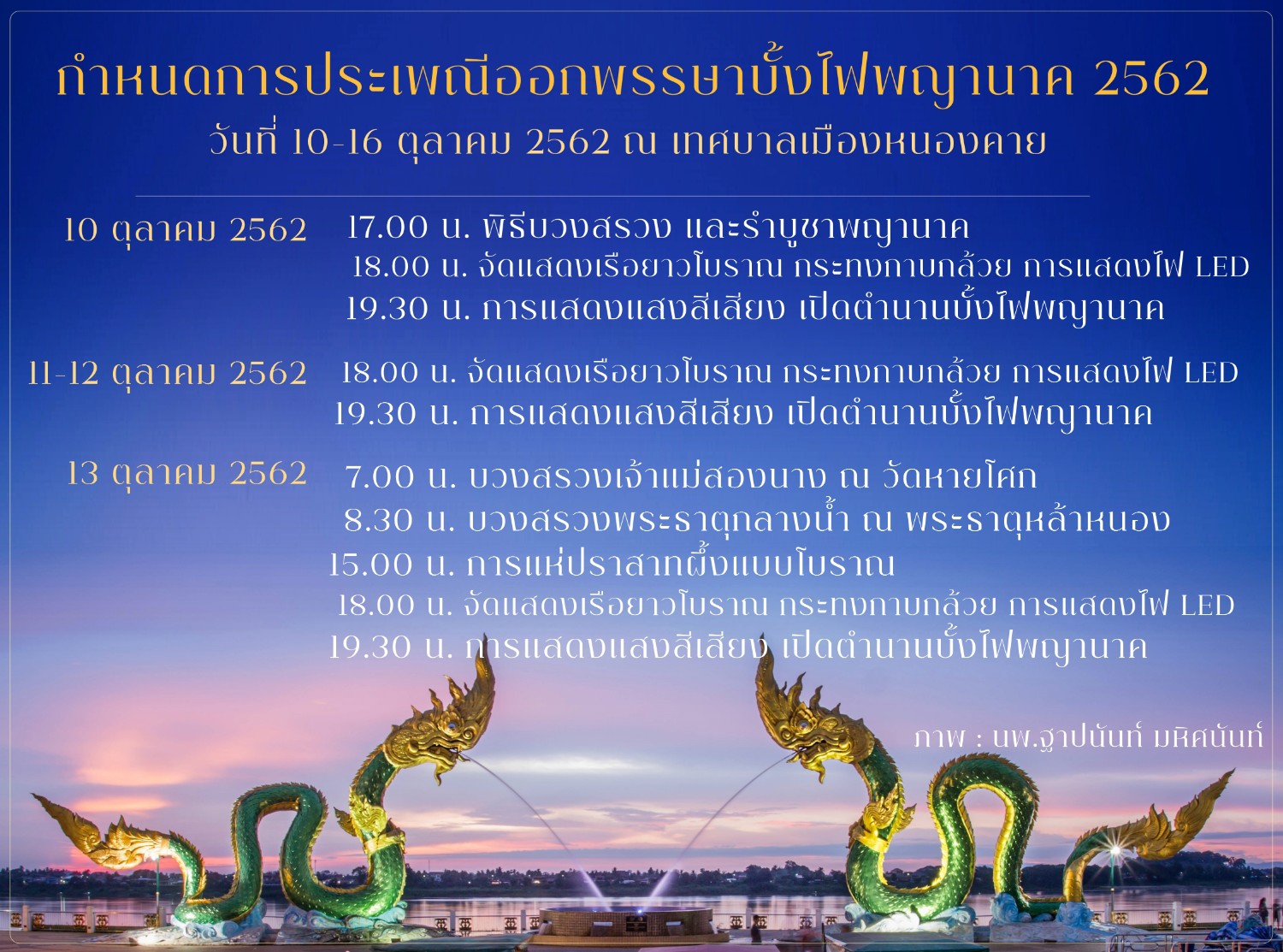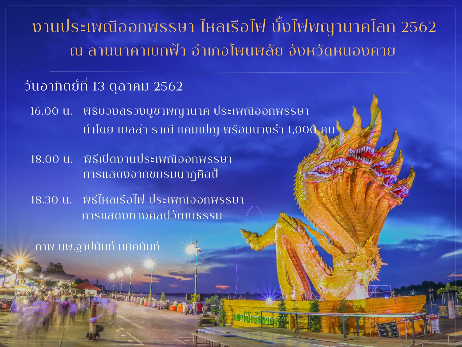 แต่มีการจัดกิจกรรมมากมายช่วงวันออกพรรษา จัดงานวันที่ 10-16 ตุลาคม 2562