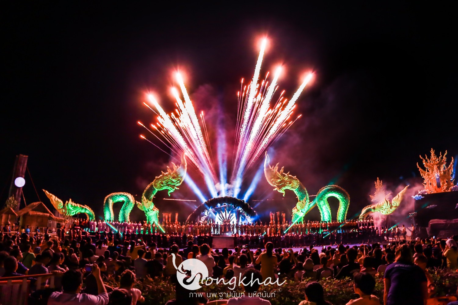 และสิ่งที่พลาดไม่ได้คือ การแสดงแสงสีเสียงเปิดตำนานบั้งไฟพญานาค ที่เทศบาลเมืองหนองคาย