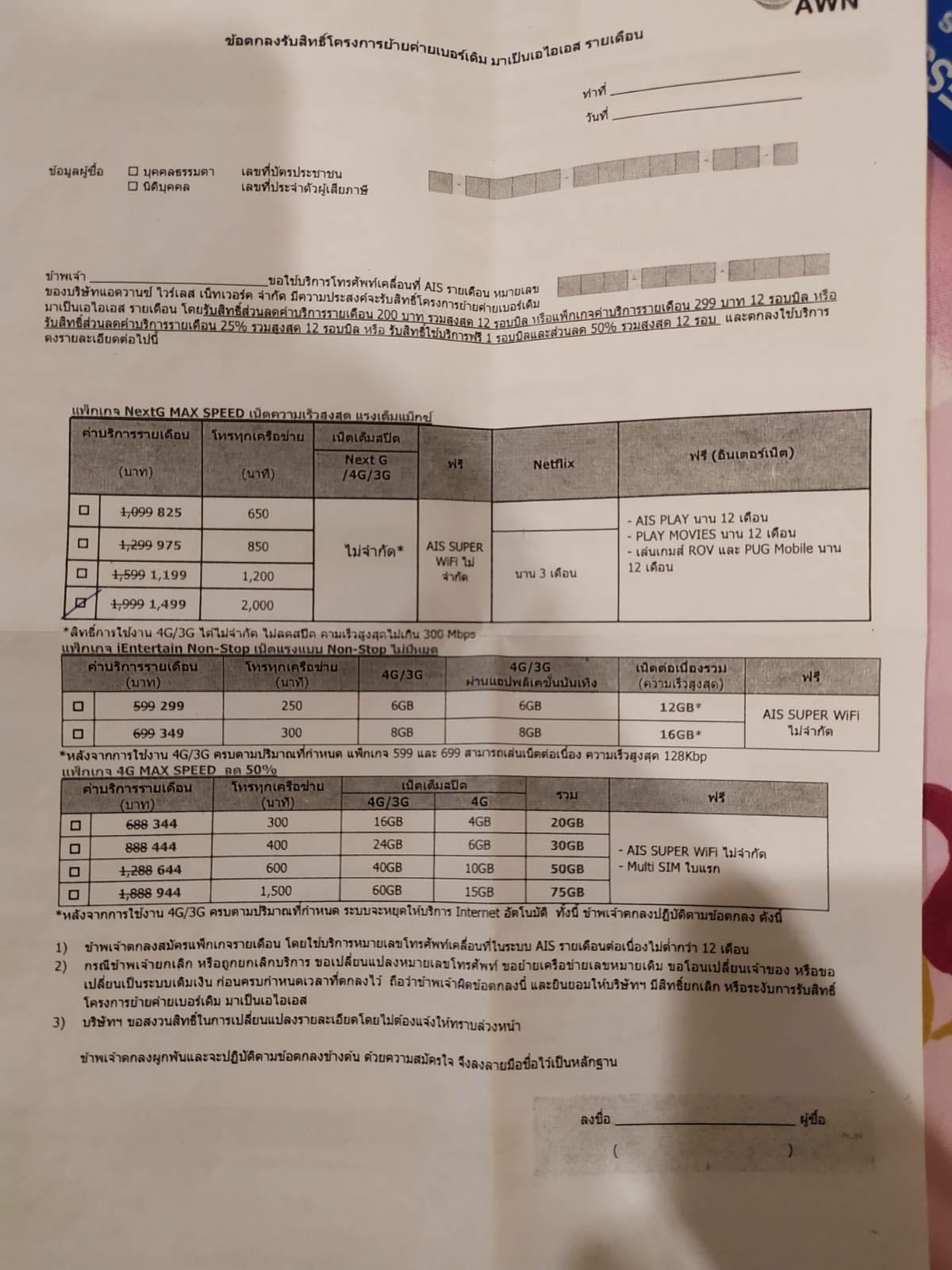 ขอเปลี่ยนแพคเกจก่อนวันมีผลจาก