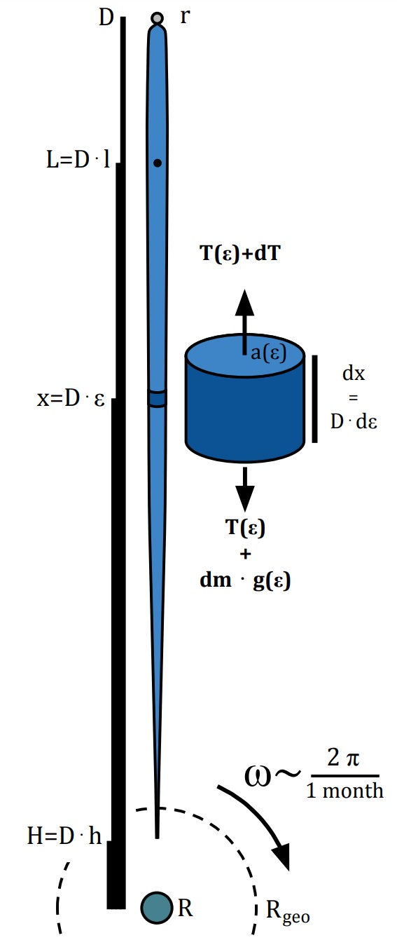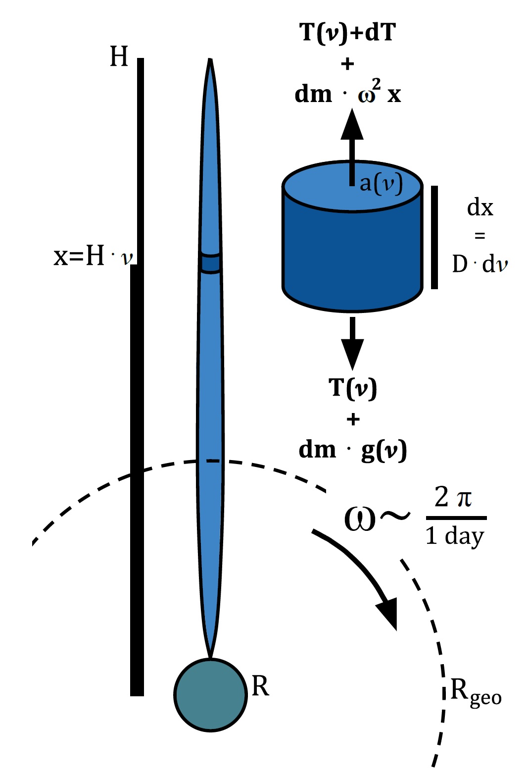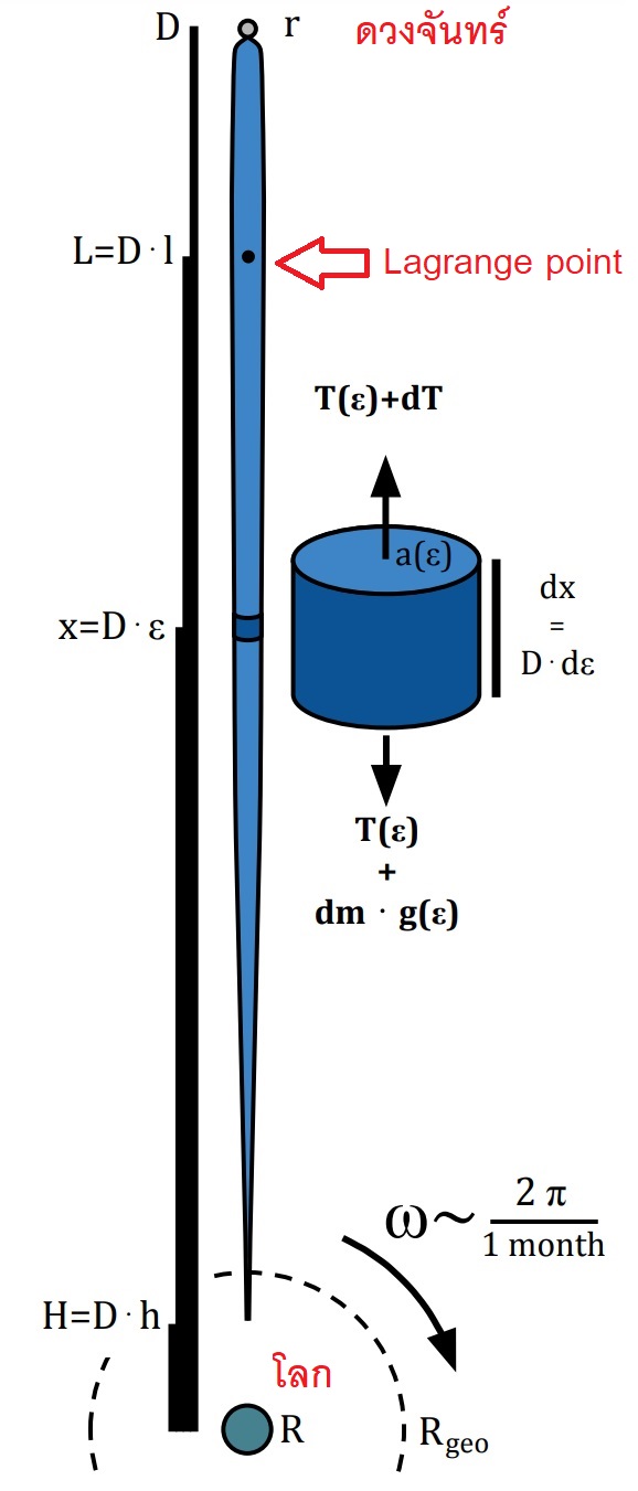แผนภาพการคำนวณในกรณีของลิฟต์อวกาศ