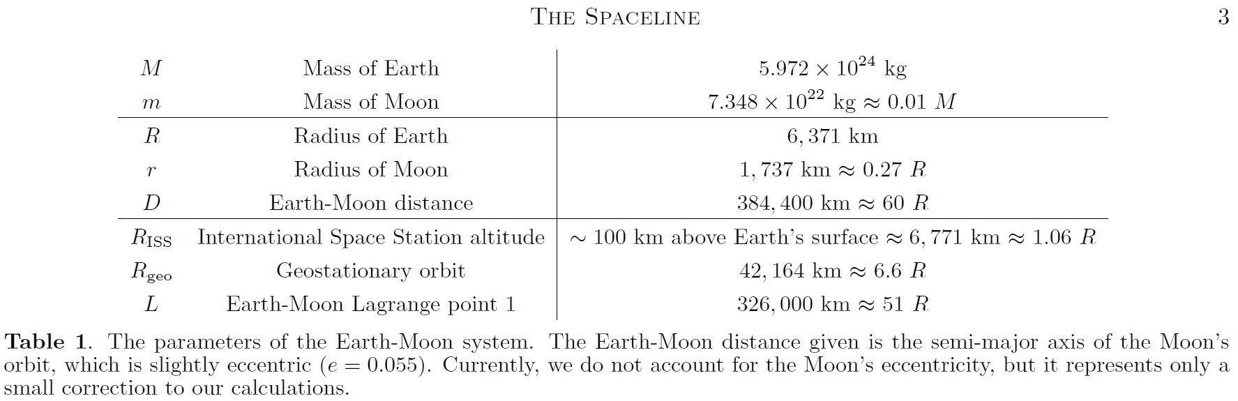 แผนภาพการคำนวณในกรณีของ Spaceline