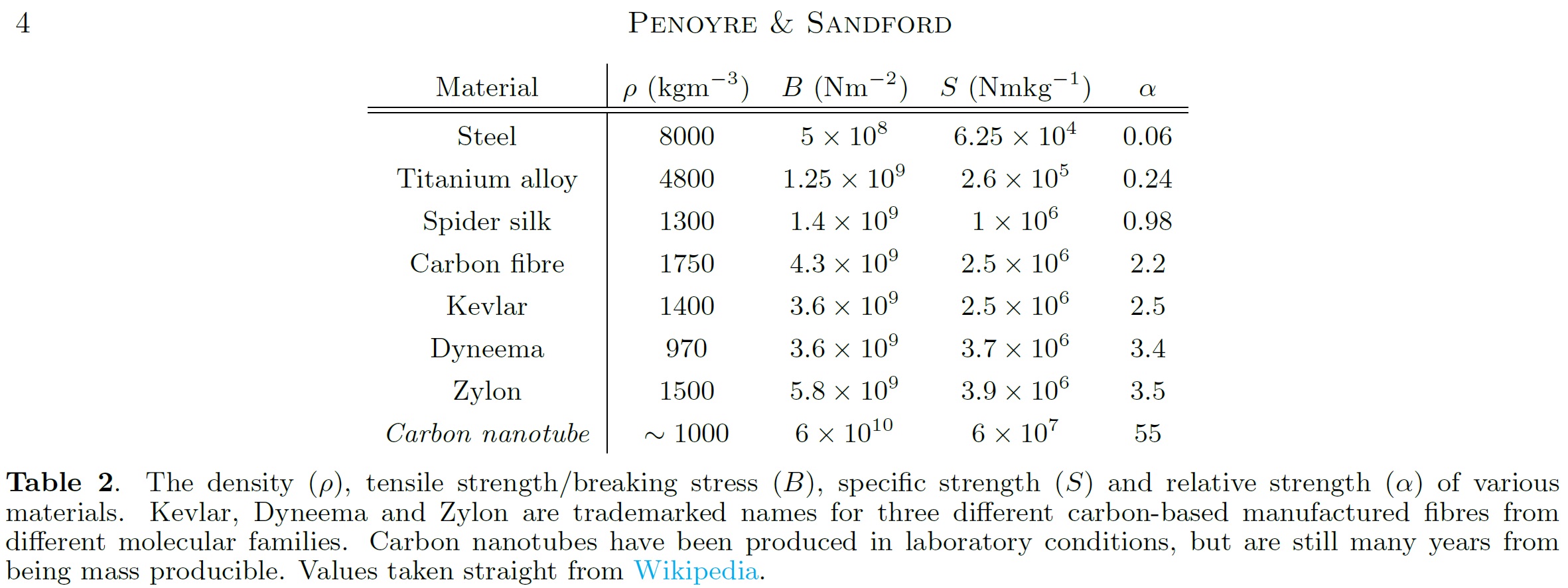 อย่างที่เล่าตอนต้น ลิฟต์อวกาศโครงสร้างหรือสลิงยักษ์ต้องรับแรงเหวี่ยงอันเกิดจากการโคจรของสถานี GEO Station ที่หมุนด้วยความเร็วเท่ากับการหมุนรอบตัวเองของโลก