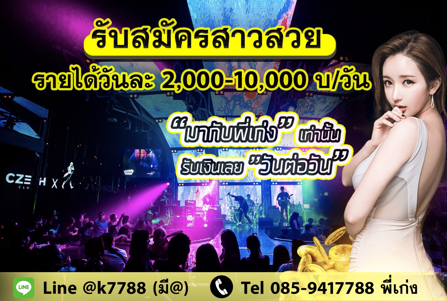 CZECH CLUB รับ PR สาวสวย ทำงานวันไหนก็ได้ รับเงินได้รายวันเลยคราบ ร้านนี้เด็กไม่พอ เปิดรับเพิ่มจำนวนมาก ให้รายได้สูงๆไปเลย