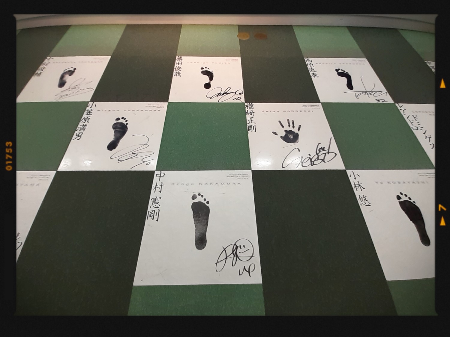ส่วนพื้นห้อง เป็นประทับฝ่ามือหรือฝ่าเท้าของเหล่านักเตะเจลีกดังๆ เท่าที่เห็นจะเป็นของนักเตะในปัจจุบันเช่นยูโคบายาชิ เคนโกะนากามูระ และอื่นๆที่เราคุ้นชื่อกันแทบทุกคน