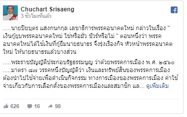 5ก.ย.62-  นายชูชาติ ศรีแสง อดีตผู้พิพากษาศาลฎีกา โพสต์ข้อความผ่านเฟซบุ๊ก Chuchart Srisaeng ระบุว่า.