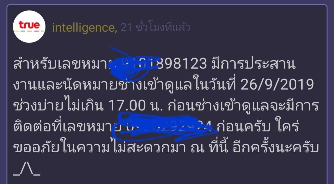 แจ้งซ่อม True internet CC - I์ntelligent - ฝ่ายช่าง แจ้งนัดหมายไม่ตรงกัน